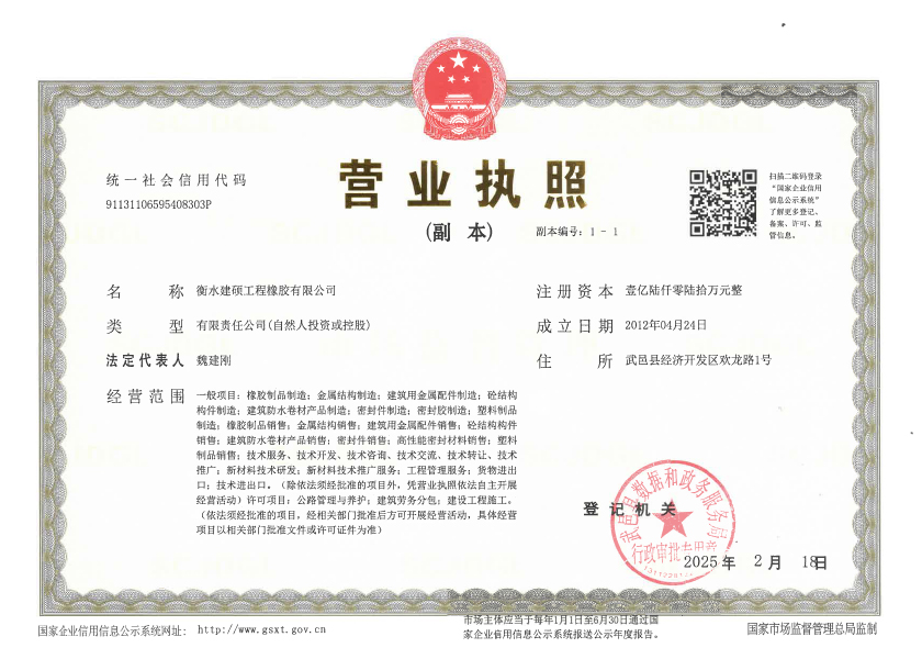 衡水建碩工程橡膠有限公司座落于衡水市濱湖新區(qū),占地面積50000平方米,注冊(cè)資金壹億零捌拾萬(wàn)元整,是生產(chǎn)橡膠支座、盆式支座、充氣芯模、伸縮裝置、止水帶的專(zhuān)業(yè)廠家。公司始建于九十年代,經(jīng)過(guò)近二十年的發(fā)展壯大,現(xiàn)有員工300多人,其中高級(jí)技術(shù)人員45人,高級(jí)技工103人。